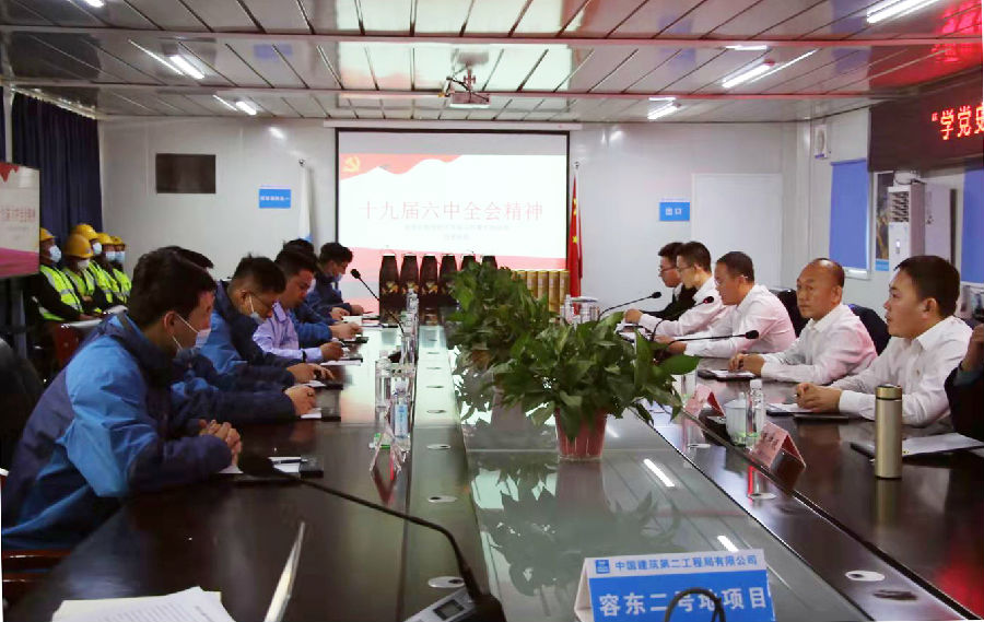 首先,高安培從“四個偉大成就”“三個需要”“兩個確立”等九個方面為參會人員講授學習貫徹黨的十九屆六中全會精神專題黨課。馬力將十九屆六中全會精神宣貫與企業發展相結合,鼓勵在場人員要在工作崗位上發揚勞模工匠精神,攻堅克難,不斷打造精品工程。