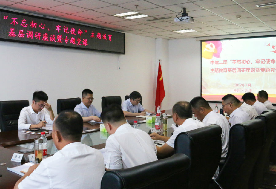 隨后,劉冬結合“不忘初心、牢記使命”主題教育開展以來自身學習體會和基層調研情況,為參會人員講授了一堂“不忘初心、牢記使命”主題教育專題黨課。劉冬從四方面講授黨課:一是以高度的思想自覺堅守初心,深入學習貫徹習近平新時代中國特色社會主義思想;二是以高度的政治自覺勇擔使命,努力開創我局“雙高”發展新局面;三是以高度的行動自覺查找差距,推動主題教育攻堅克難有成果;四是以高度的使命責任狠抓落實,全面推進我局“安全生產、質量管控、環境管理整治提升”見成效。黨課最后,劉冬結合調研主題,對四公司工作提出兩點要求:一是黨委在主題教育中要履行主體責任;二是廣大黨員干部要發揮模范帶頭作用。