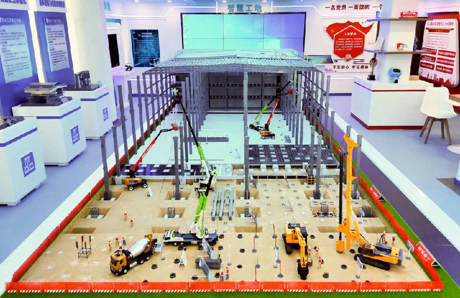 面對“周邊環(huán)境復(fù)雜、施工難度大、建設(shè)工期緊”等難點,項目運用AI智能監(jiān)控識別系統(tǒng)、5G+VR眼睛巡檢交互、智能安全帽、機械定位管理監(jiān)測、高支模自動監(jiān)控系統(tǒng)、鋼結(jié)構(gòu)監(jiān)測等智能化管理舉措,通過“軟件+硬件”、“人防+技防+智防”實現(xiàn)對現(xiàn)場的動態(tài)智能化管控。