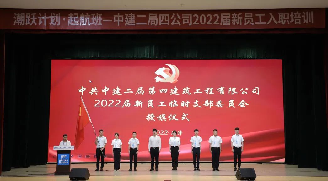 公司黨委常委、副總經(jīng)理胡超為新員工臨時(shí)黨支部授旗。