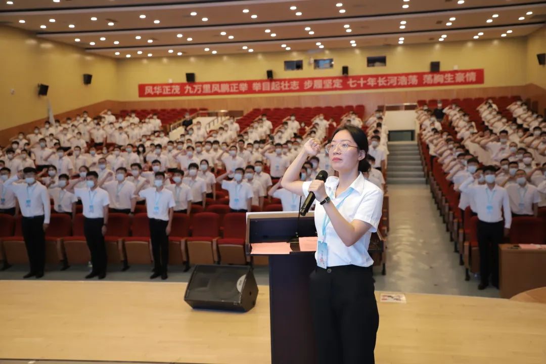 在開(kāi)班儀式上,新員工代表杜慧媛作入職發(fā)言,并帶領(lǐng)2022屆全體新員工宣誓。