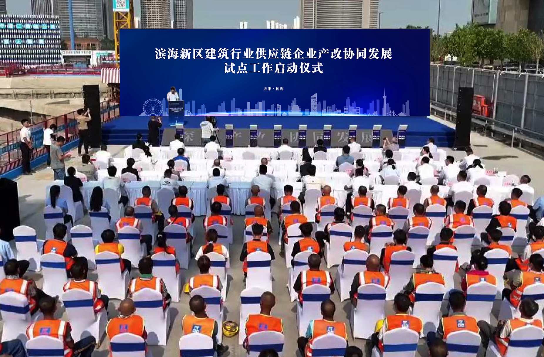 為進(jìn)一步推動(dòng)產(chǎn)改走深走實(shí),激發(fā)產(chǎn)改活力,打造一支知識(shí)型、技能型、創(chuàng)新型的高素質(zhì)產(chǎn)業(yè)工人隊(duì)伍,6月12日,天津市濱海新區(qū)建筑行業(yè)供應(yīng)鏈企業(yè)產(chǎn)改協(xié)同發(fā)展試點(diǎn)工作啟動(dòng)儀式在中建二局四公司天津塘沽南站城市更新濱河A地塊項(xiàng)目舉行。