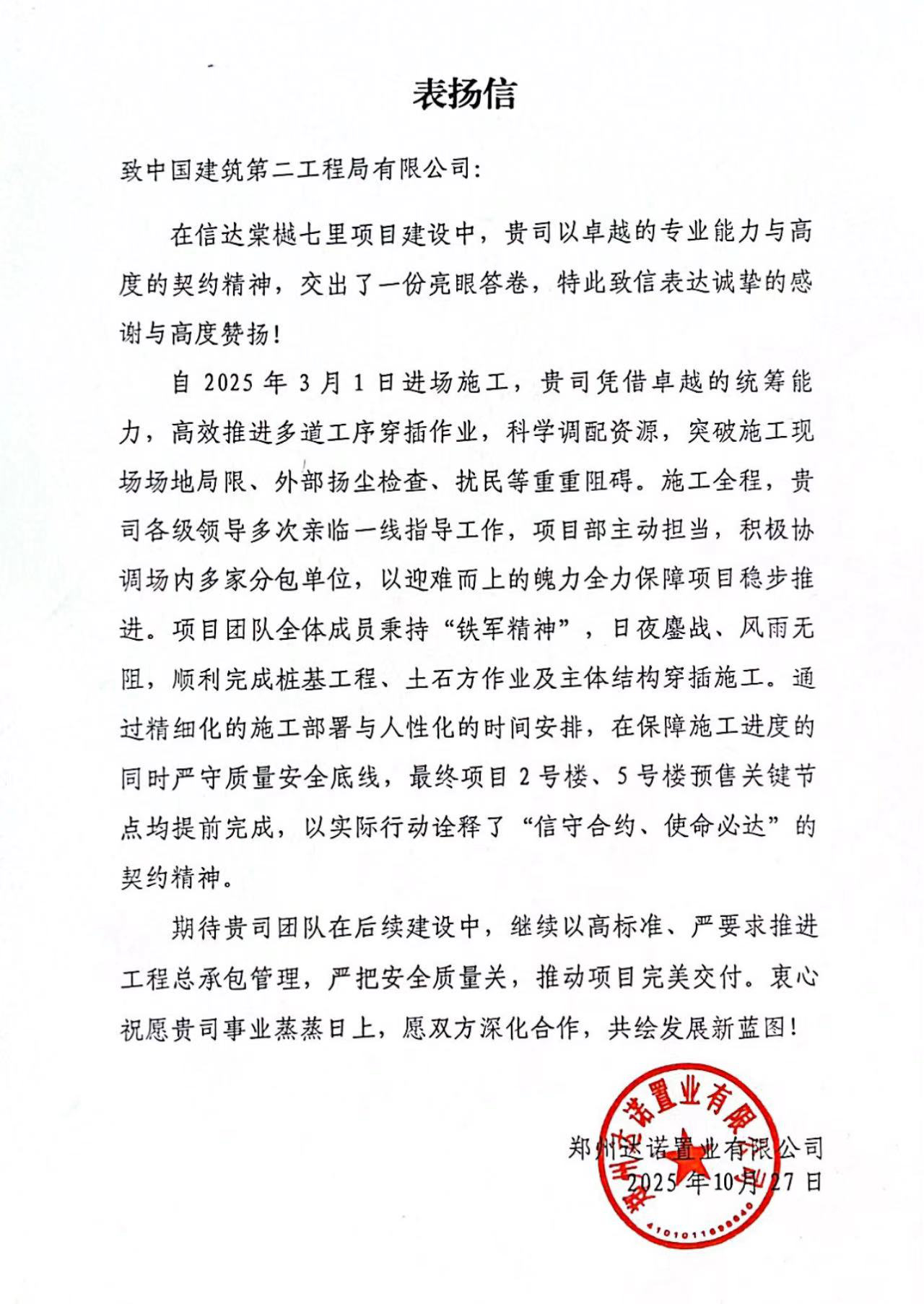 接連收獲多封業主表揚信